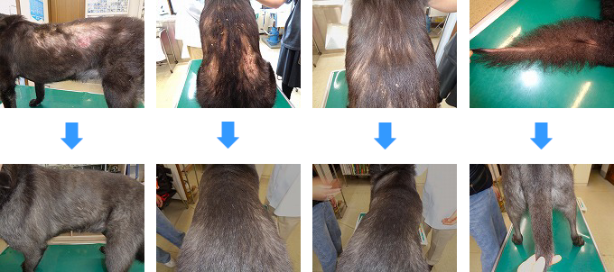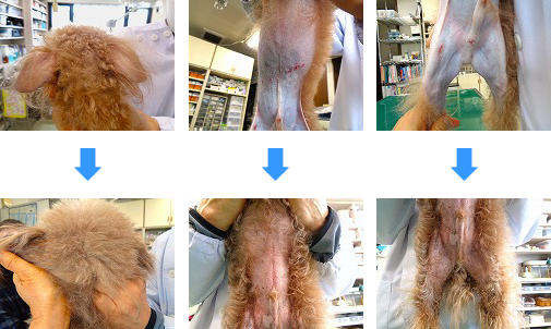 全身の毛が薄く痒みもありました。2か月後には毛が生え揃ってきました。