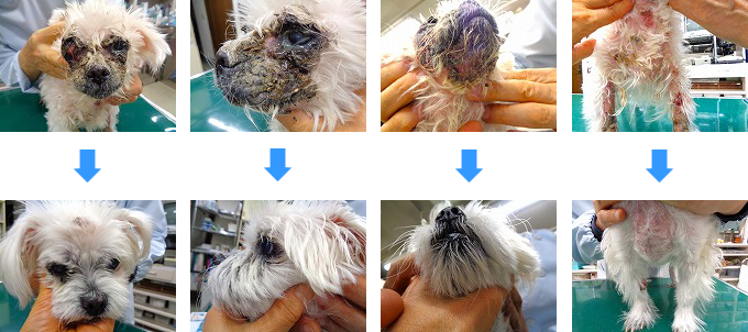 特に口まわりの痒みが激しく、血が出るほど掻いていました。半年後には白い毛も生え、痒みもなくなりました。