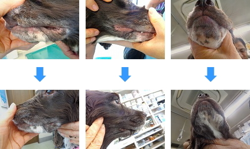 かなり痒みがあり、あごは掻き壊して血もにじんでいました。2か月後には痒みもほとんどなく、薬の減量を試し始めています。