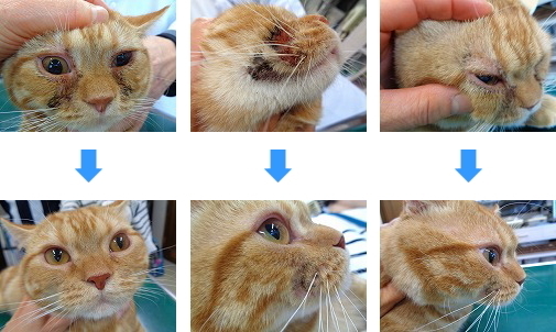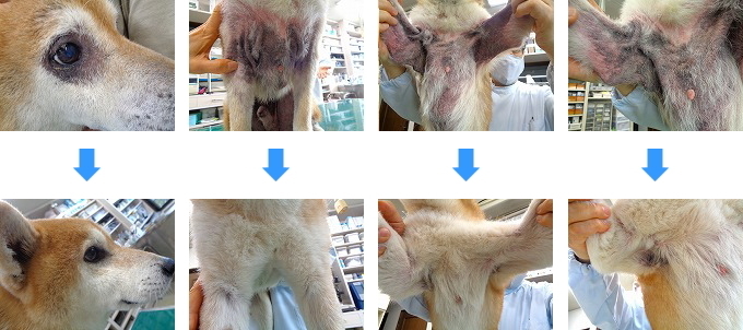 元気もなく、皮膚炎が所々にありました。皮膚がきれいになるとともに元気も出てきました。